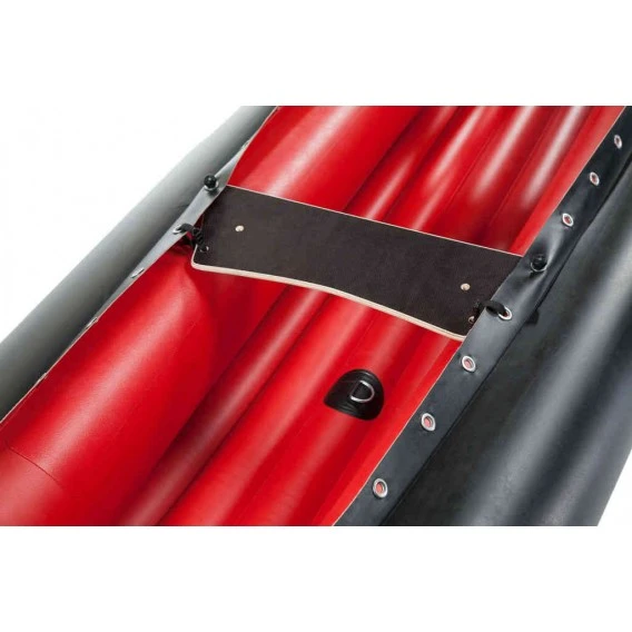 Die Kombination von schrägen Sitzbrettern und schlanker Innenbreite gewährleistet bequemes Knien bei optimalem Halt und Kontakt zum Boot; zum leichten „Aussteigen“ klappen die Bretter bei einer Kenterung hoch. Der D-Ring unter dem Sitzbrett dient zur Fixierung von optionalen Schenkelgurten und zur Befestigung von Gepäck.